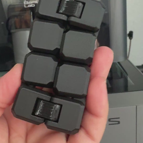 This sleek, modern 3D printed articulated fidget cube is the perfect stress-relief toy for kids, teens, and adults. Designed with smooth rounded edges and flexible joints, each segment moves and clicks satisfyingly in your hand, making it ideal for sensory needs, anxiety relief, focus, and everyday fidgeting.