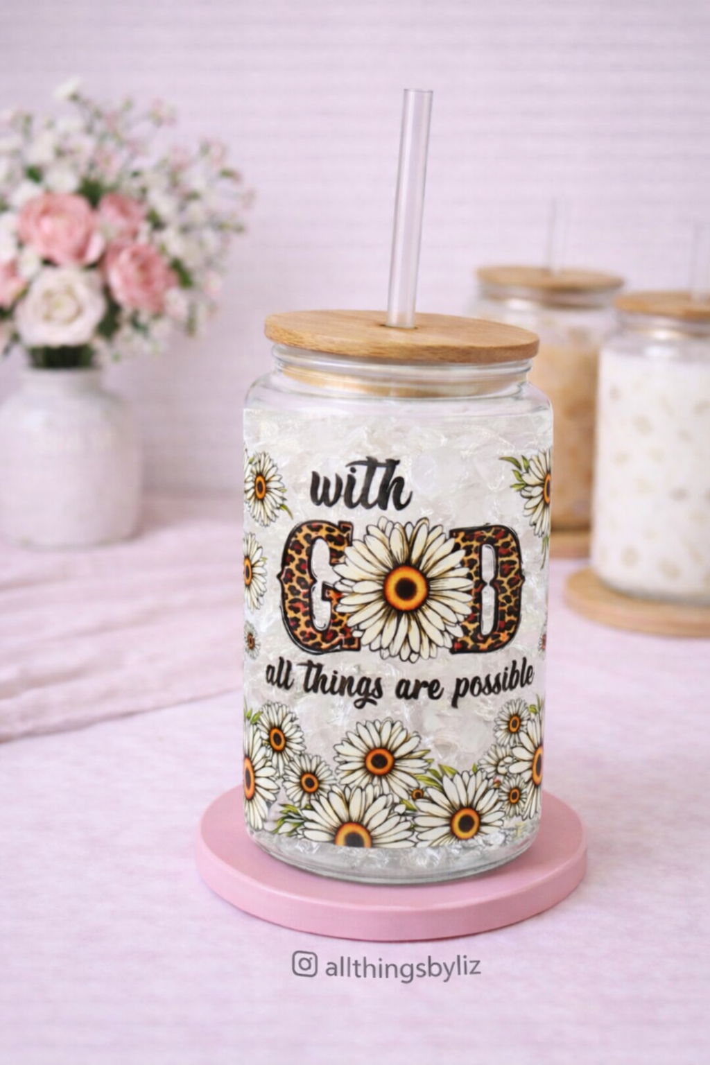 Unlock the boundless potential in your life. This 16 oz glass mug serves as a daily reminder that with God, all things are possible. Let the uplifting message and quality design add inspiration to your morning routine.